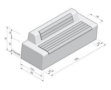 | Solid - 84/78,5x76/45x200 cm - seat rugband midden - Grijs ZVB | |